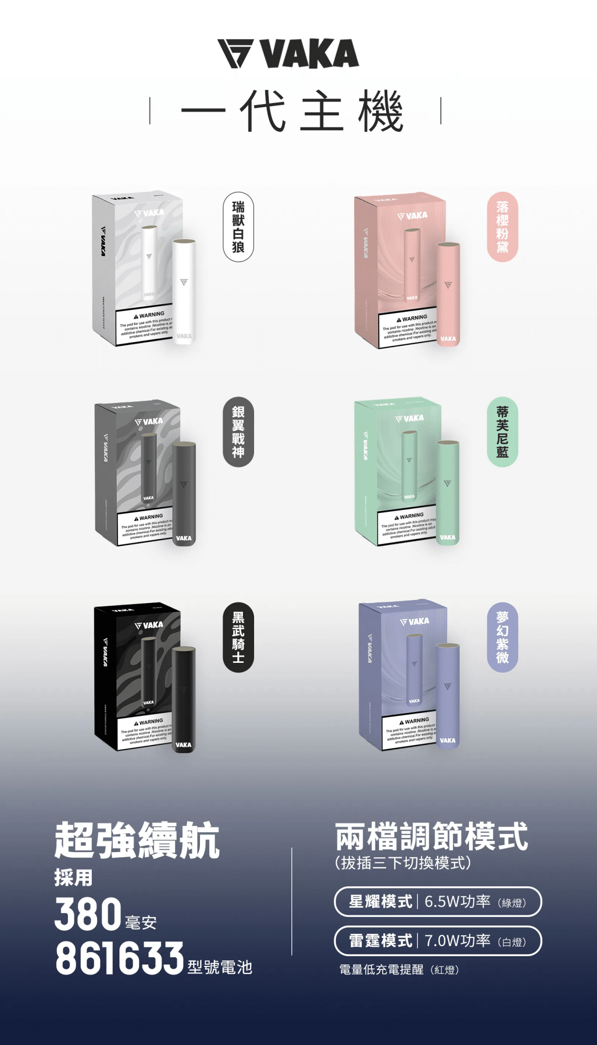 健康與安全考量:VAKA主機和煙彈均不含焦油,無二手菸危害,且尼古丁含量適中,有助於減少健康風險。